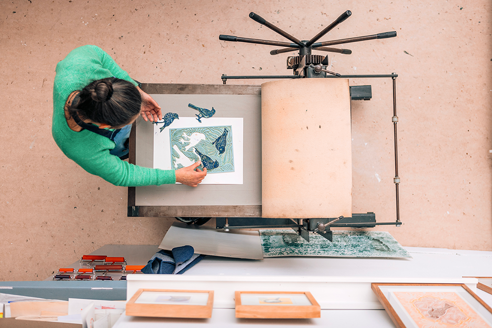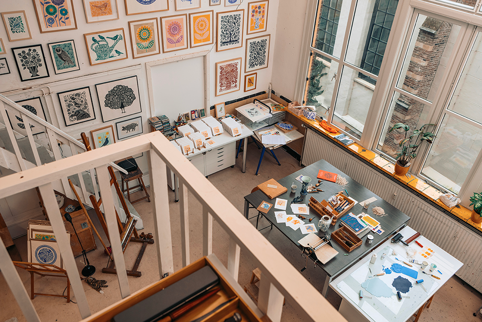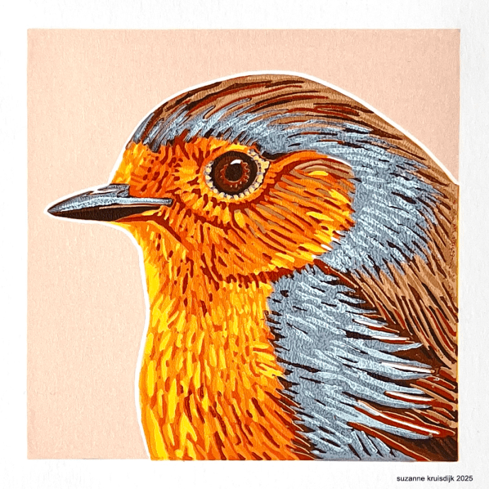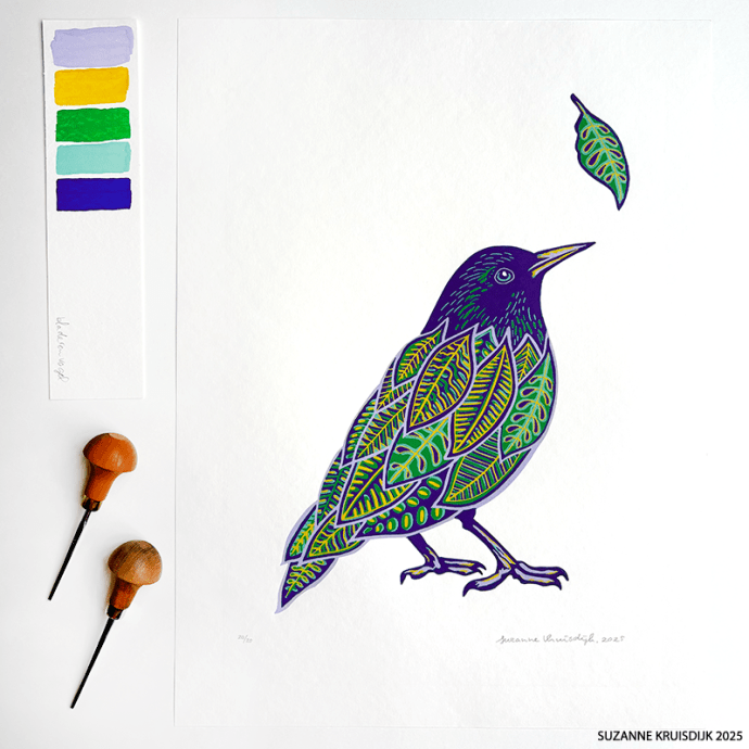 Just finished these new reduction linoleum prints! I made 2 colour versions of this larger size lino piece, a pink/purple colour scheme and a green/ purple one, which is not the usual colour style for me to work with but I like a lot actually. They are limited edition print runs. Each print is individually…
