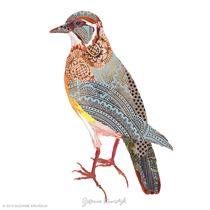 100 day project 2018 on instagram: I’m really glad I joined this artproject wich surprisingly turned out in a 100 birds project for me, while I thought upfront I was going to make different animals each day. I am really enjoying the creativeprocess experimenting with combining watercolor and collage.