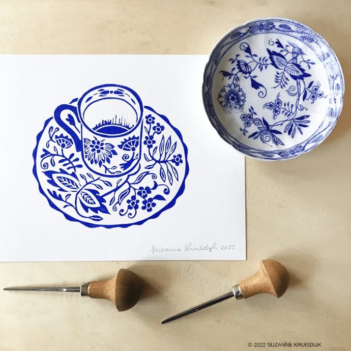 Lately I’ve been working behind the scenes making a new series of linoleum prints. The series is inspired by my collection of vintage blue and white porcelain saucers and are a tribute to the women in my family. The series now consists of 7 works that can be seen both separately and as a whole,…