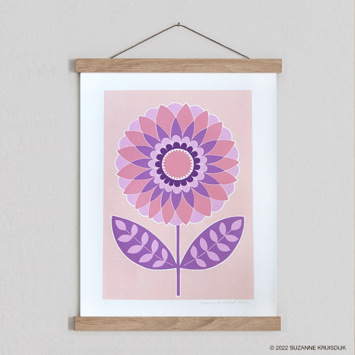 These limited edition linoleum prints are available in 2 color schemes. There is a blue/green and a red/pink version. They are made with a combination of reduction and puzzle technique. Many colors are used in this print, a total of 18 (!) different colours are printed layer upon layer. Each print is individually inked and…