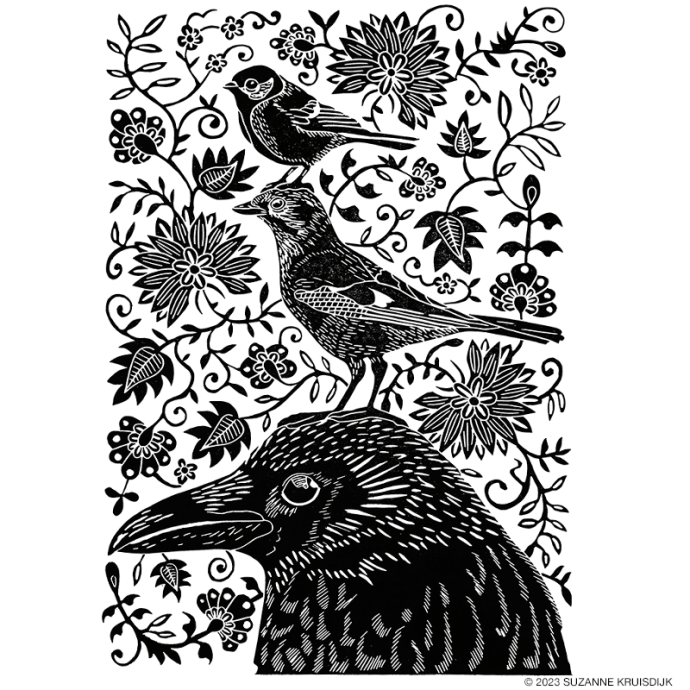 It was the blue-throat bird that initially served as a model for this linoleum print. But along the way I decided to do something completely different with the colours. In other words, completely out of my comfort zone and trying new (not obvious) combinations. In the end I am very happy with the result, the…
